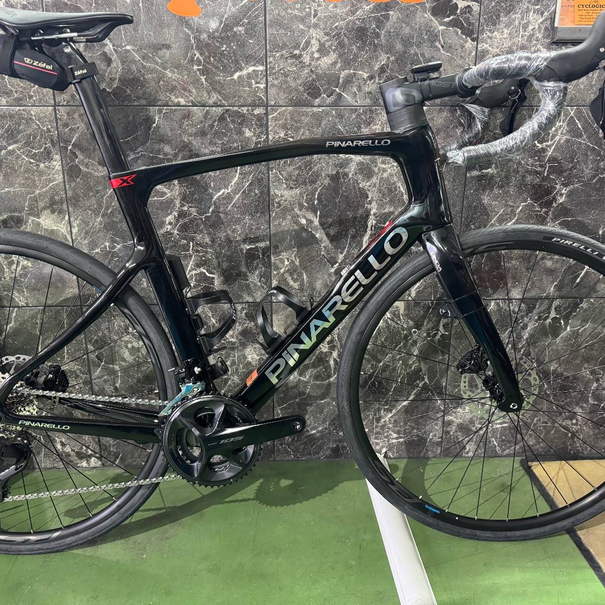Our Pinarello Razha and Angliru Road Bikes are full Carbon Fibre Road Bikes and are equipped with Shimano Ultegra 11 speed Groupsets, (50/34 ) on front and (11/28 ) on the rear and are also all equipped with Shimano Hydraulic Disc Brakes.